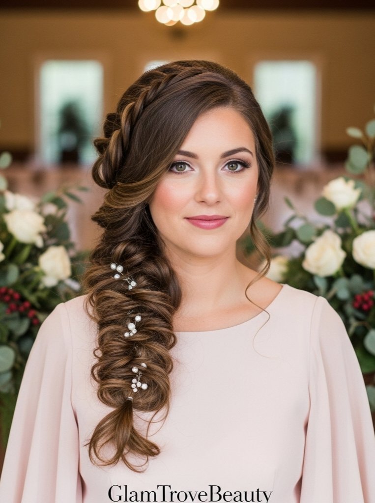 For bridesmaids, try simple side braids or half-up braided crowns. They’re chic yet won’t upstage the bride.
