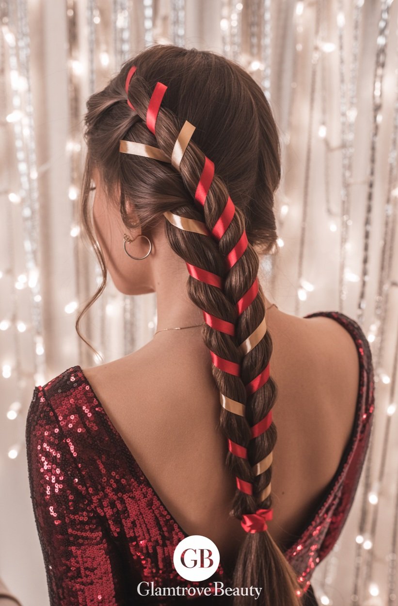 Braids with red, green, or gold ribbons woven in make the ultimate Christmas party statement.