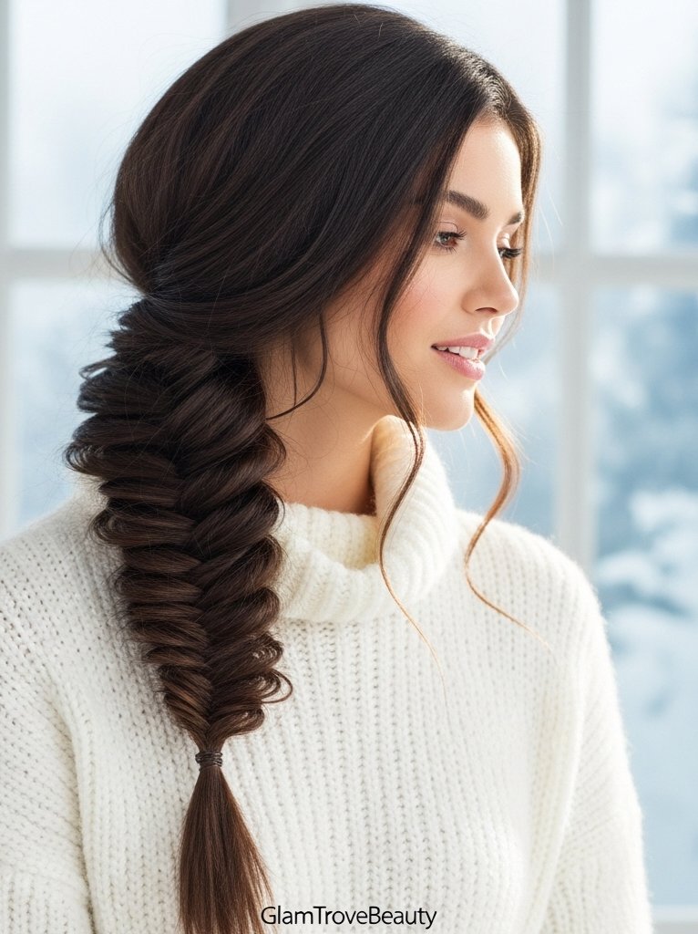 1. Winter Fishtail Braid Hairstyle 🐟