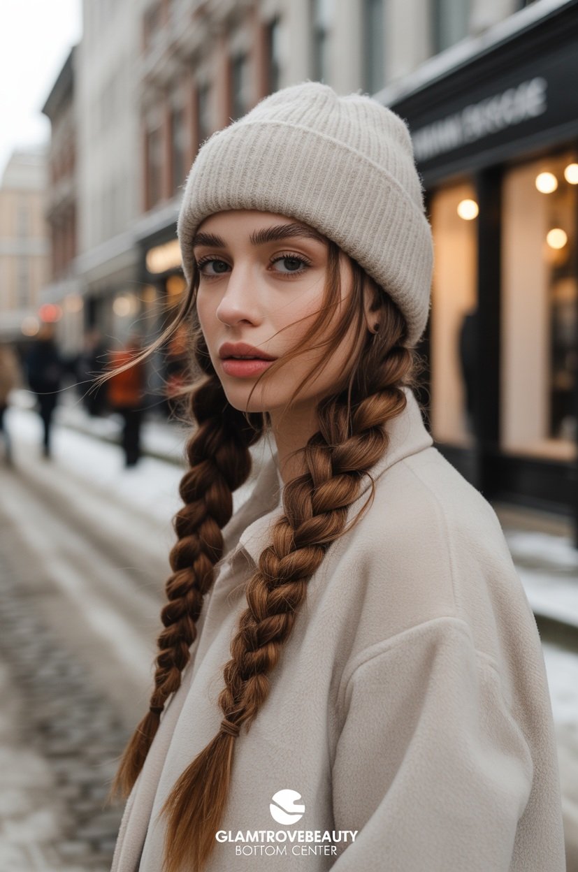 💡 Pro tip: Try double Dutch braids for ski trips or sporty winter looks.