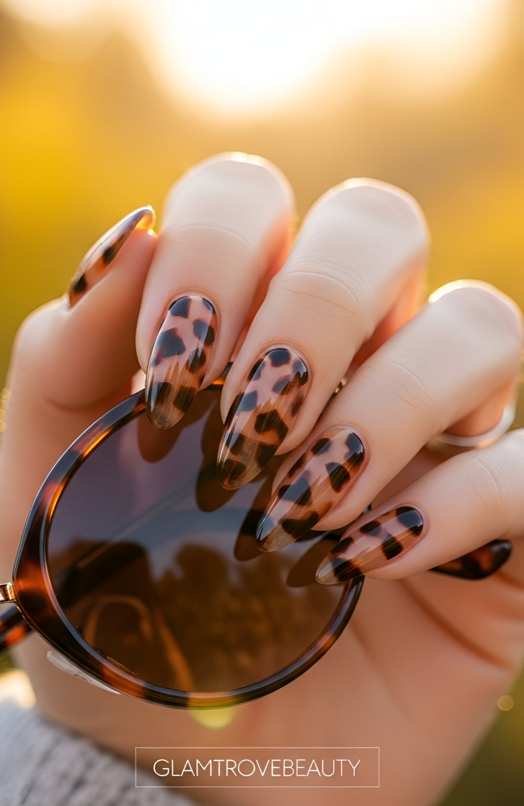 This fall version of the viral glazed nail trend adds amber chrome shimmer for a golden-hour glow. Elegant and trendy, it catches light beautifully for a radiant autumn look.