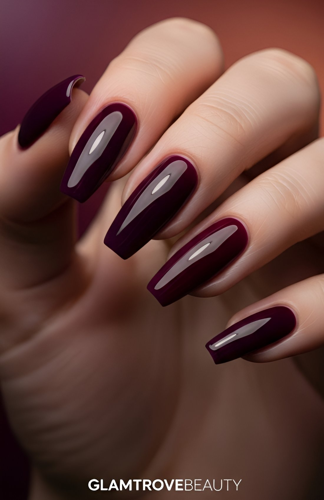 Deep plum, berry, or merlot tones bring the richness of fall beverages to your nails. Glossy or matte โ both are divine.