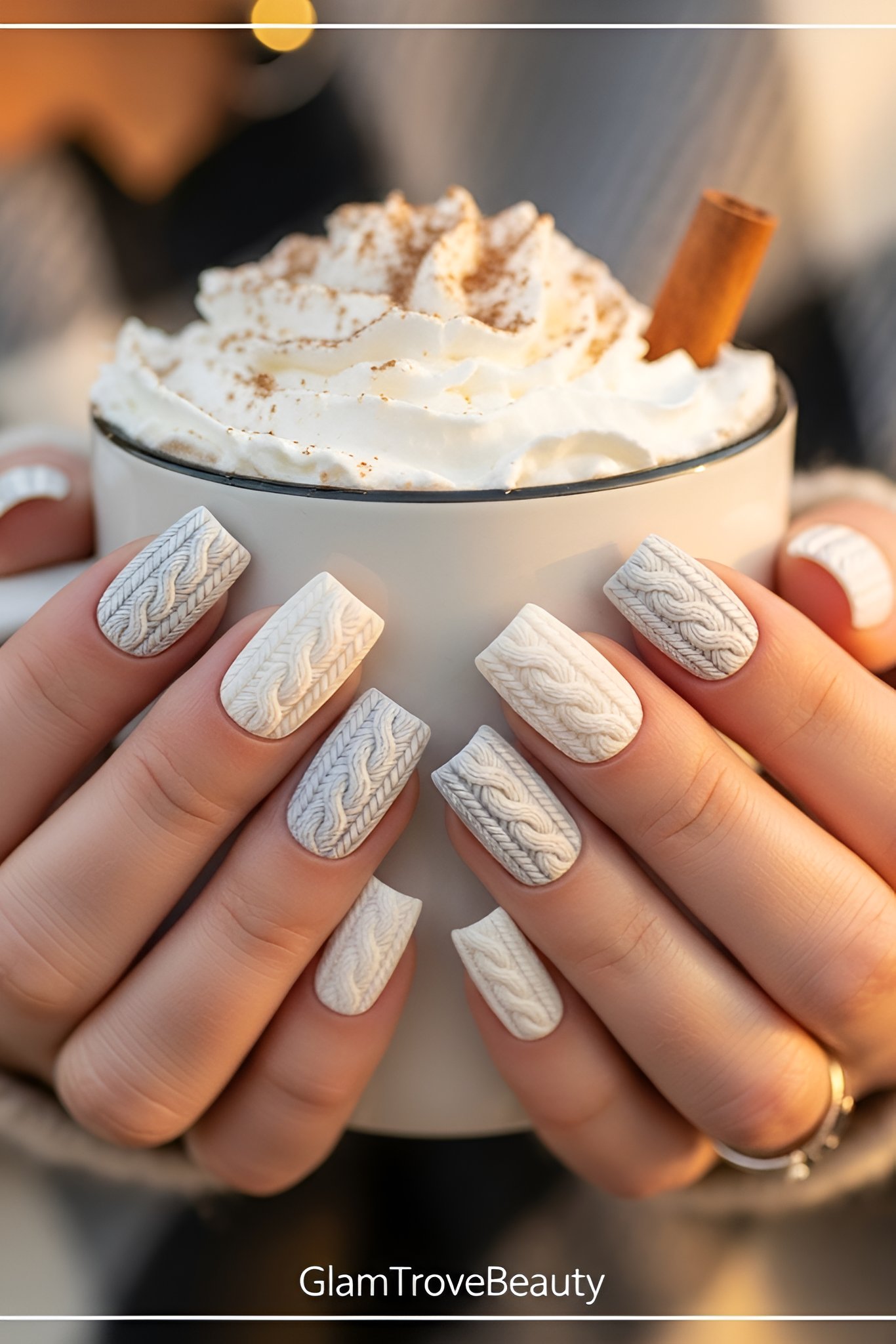4. Sweater Texture Nails ๐งถโ๏ธ